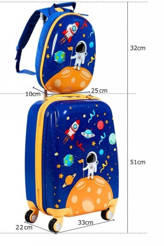 Detský kufor pre najmenších zákazníkov je moderný a ľahký, vyrobený z veľmi odolného plastu ABS a polykarbonátu odolného voči poškriabaniu. Kufor má navyše ochrannú fóliu, ktorá ho chráni pred poškodením. Ideálny na všetky typy výletov, prázdninové výlety, školské výlety alebo výlety do škôlok, ale aj ako príručná batožina, spĺňa požiadavky na príručnú batožinu- Vnútro je plne podšité. vo vnôtry sa nachádzajú bezpečnostné pásy. Kufor je zabezpečený kombinovaným zámkom, ktorý zabraňuje neoprávneným osobám dostať sa dovnútra. Je vybavený teleskopiskou rukoväťou a štyrmi 360-stupňovými kolieskami odolnými voči zaťaženiu.