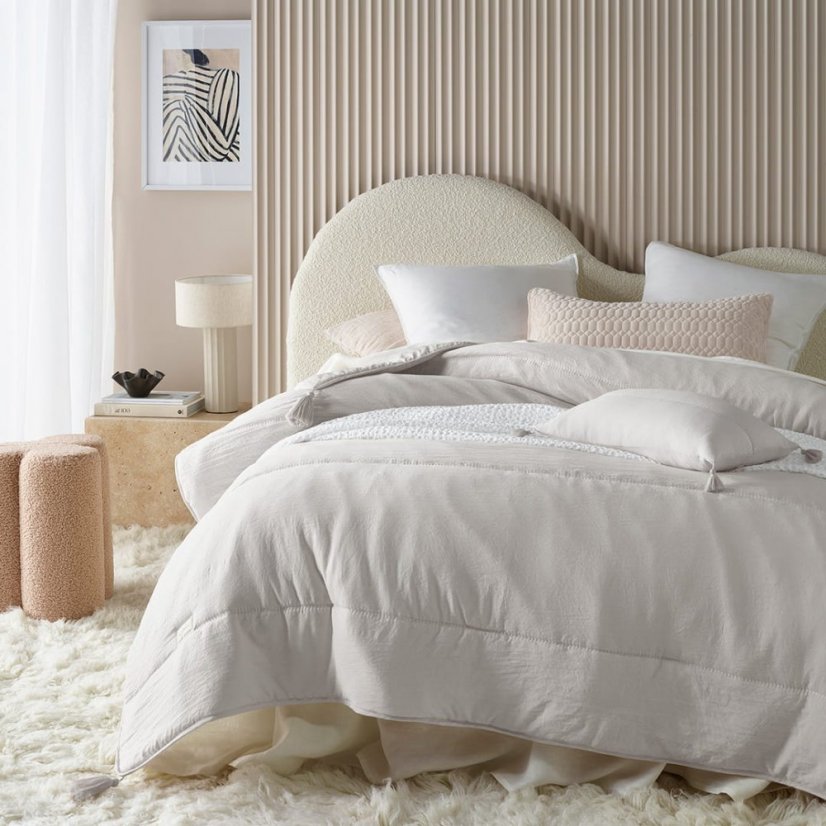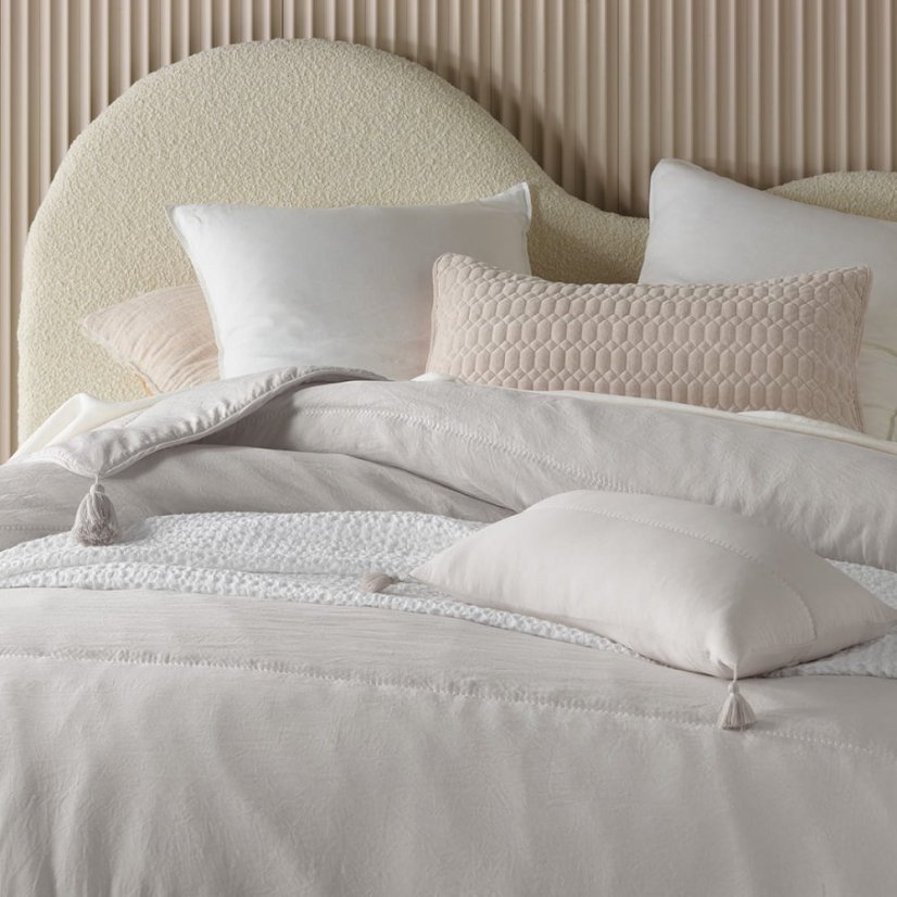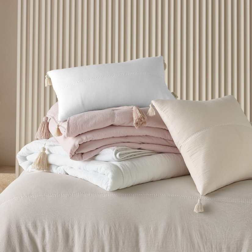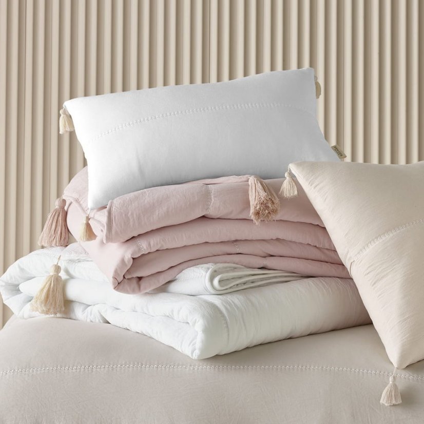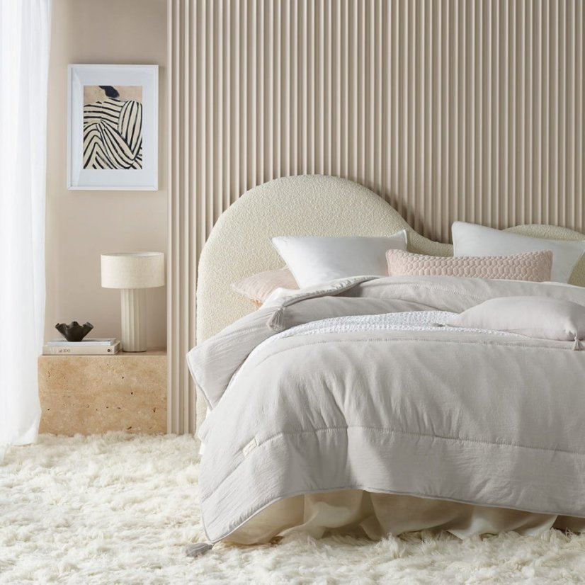 Prehoz vďačí za svoju hrejivosť látke príjemnej na dotyk, ktorá vyjadruje bezkonkurenčnú kvalitu a starostlivé spracovanie. Krásne prešívanie zdobí vrchnú časť prehozu a zaisťuje výnimočnú trvanlivosť produktu. Husté strapce dodávajú šarm a vytvárajú dojem vizuálnej ľahkosti. Nádherne, jedinečne a elegantne doplní tú najintímnejšiu časť Vášho priestoru.